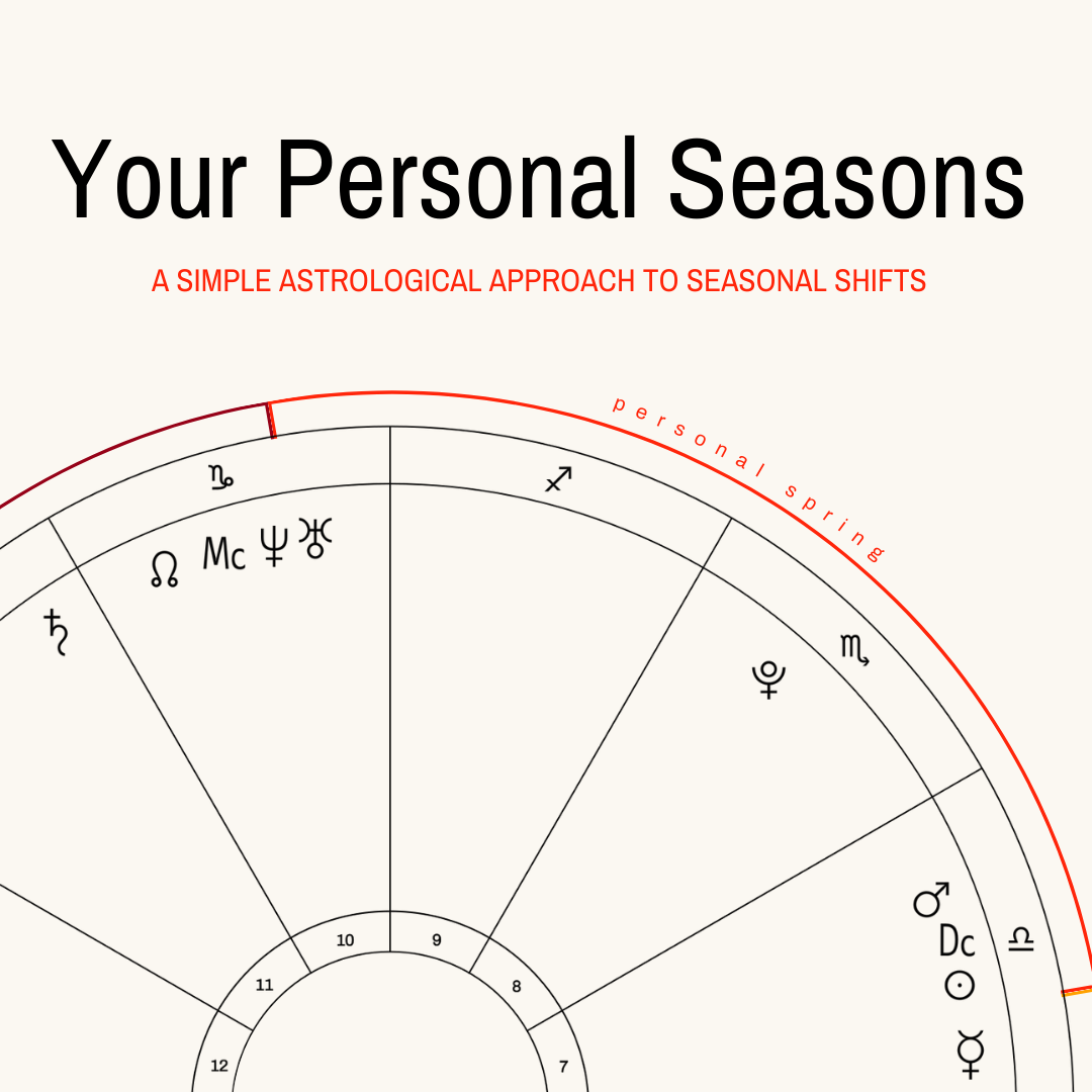 Your Personal Seasons is a tool is to help you get curious and tune into your yearly rhythms, taking a cue from your natal chart’s blueprint. This 10-page guide includes a instructions for a simple 1 page layout for your personal seasons, tables for Solar Seasons and Houses, a guide to House qualities, and prompts for reflections.